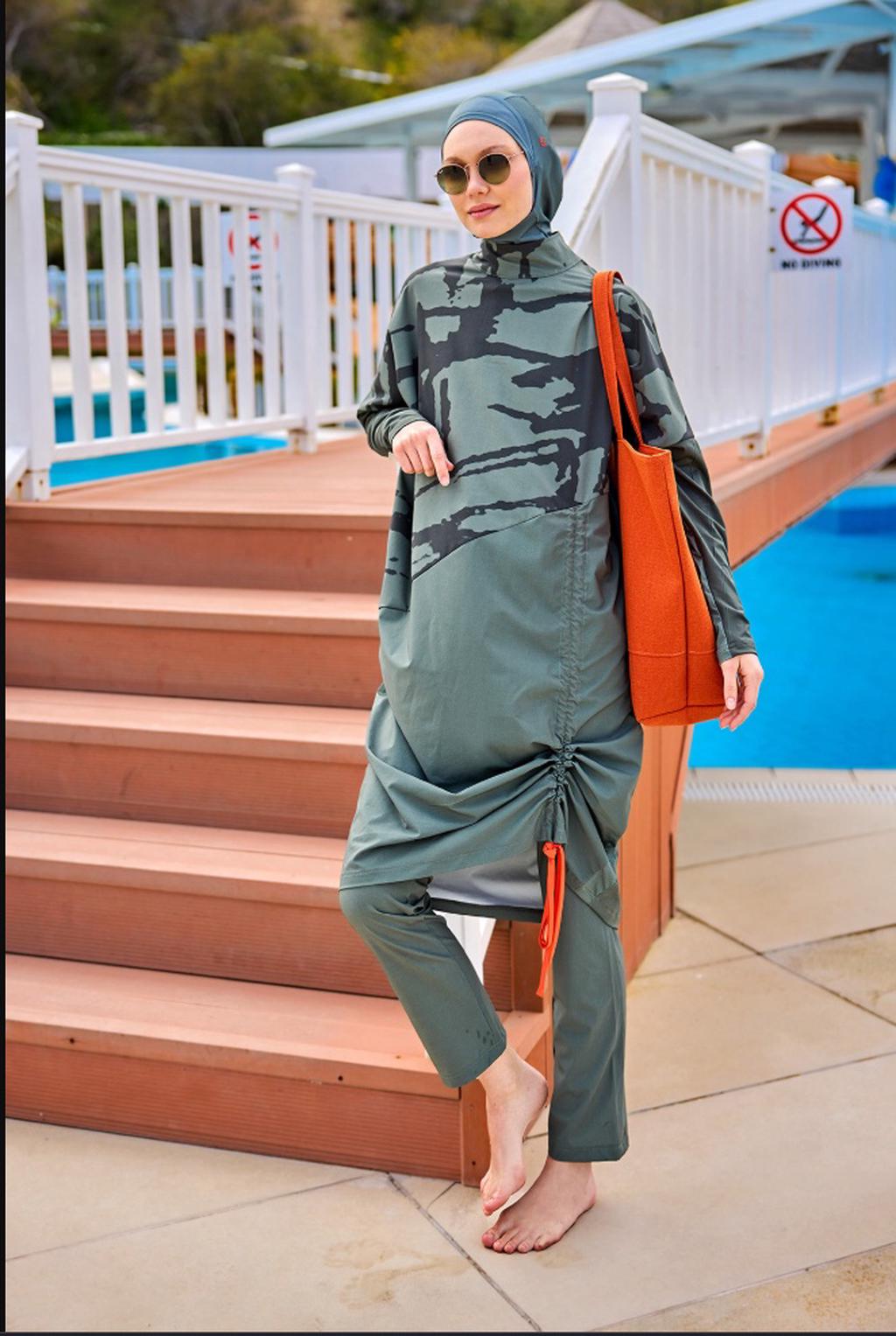 Haki Tam Kapalı Tesettür Mayo Gizli Fermuarlı8691616285372