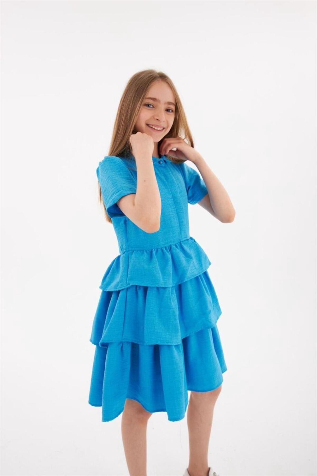 Kız Çocuk Renkli Yandan Fermuarlı Kat Kat Elbise02