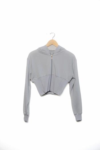 3 ip şardonsuz kapüşonlu kalın ribanalı sweatshirtGri