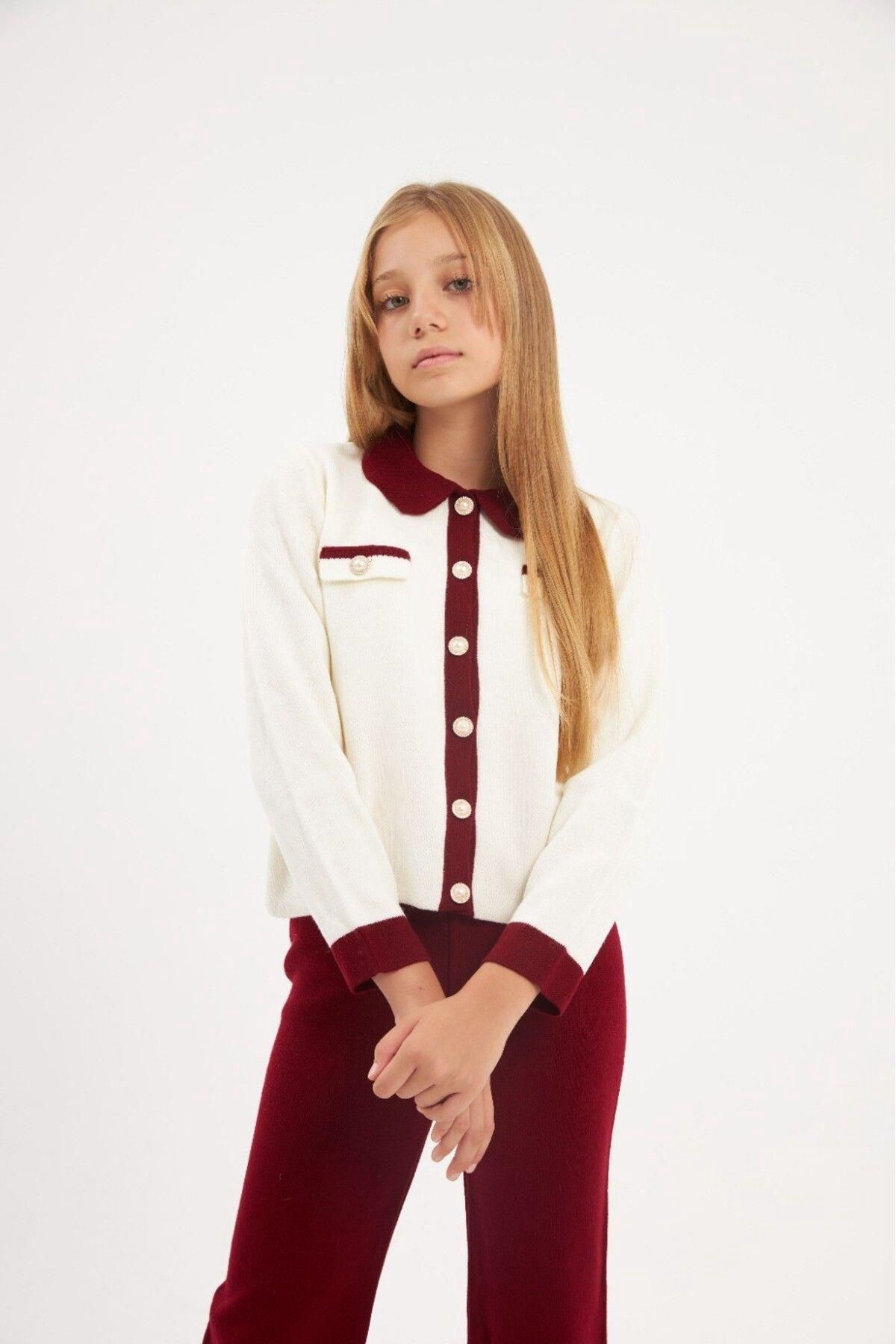 İnci Düğmeli Triko Hırka Düz Renk Triko Pantolon 2&;li Takım02