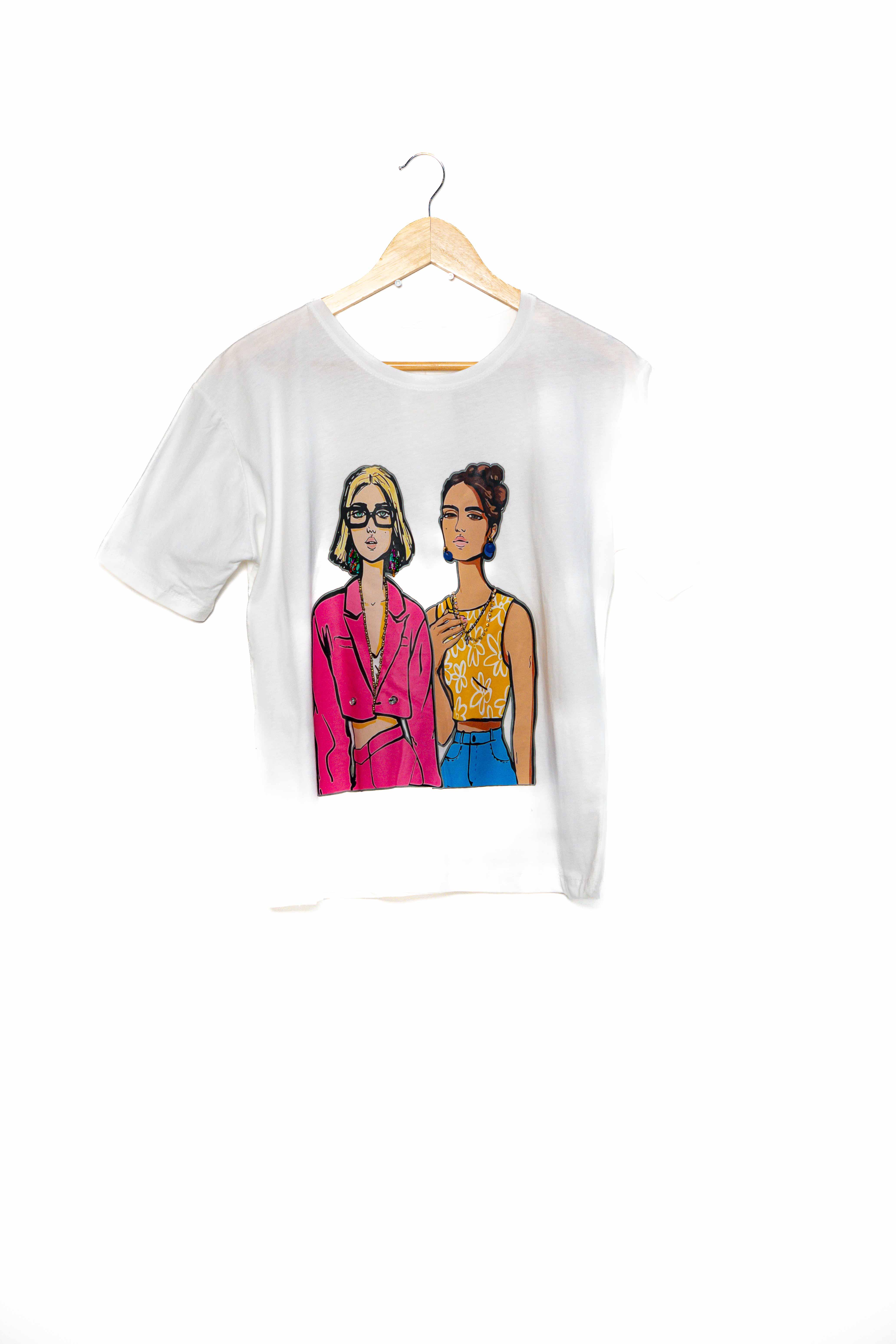 Orta kalıp dijital baskı taşlı tshirtBeyaz